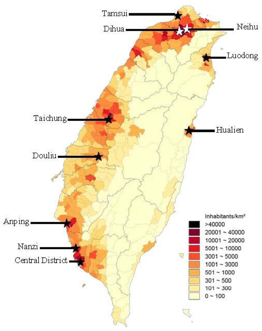 Тайвань карте плотности населения. Тайвань карта населения (Восточной Азии - Азия) для печати. Тайвань карта населения (Восточной Азии - Азия) скачать.